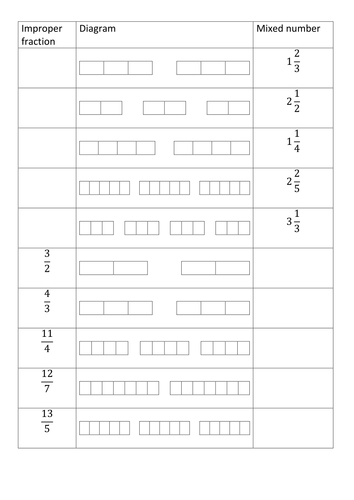Converting Mixed Numbers To Improper Fractions Worksheet Tes